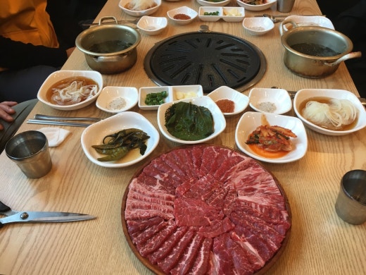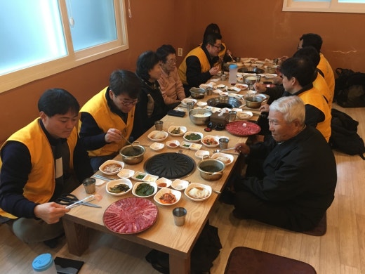 장보기를 마치고 시장 인근에 있는 한우 맛집인 "하늘소" 식당으로 이동하여 한우특수부위모듬과 청국장으로 맛있는 점심 식사를 하였습니다. 육질이 아주 연해서 어르신들이 오랜만에 맛있는 식사를 하였다며 매우 좋아하셨습니다.