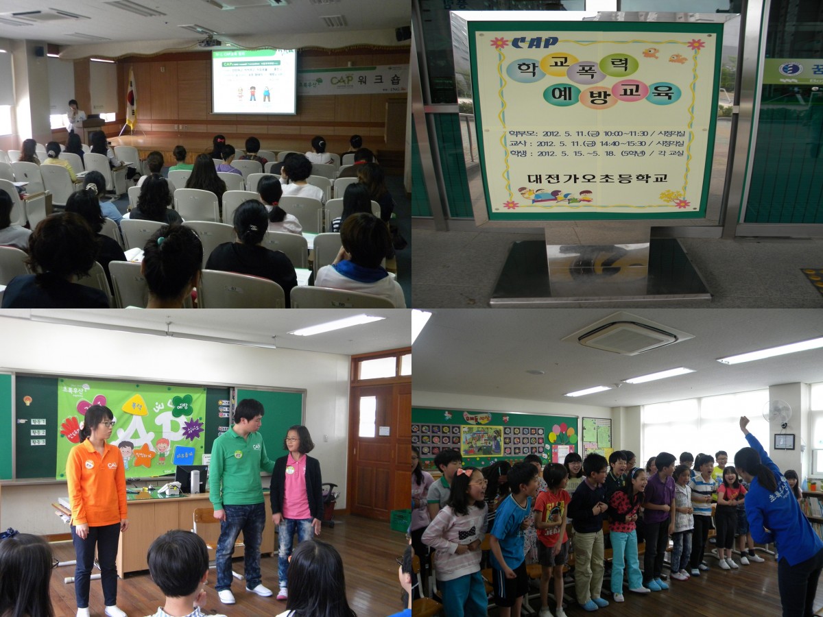 초록우산 어린이재단 대전종합사회복지관(관장: 유미)에서는 2012년 5월 11일부터 5월 18일까지 대전가오초등학교(교장: 성수자)에서 CAP교육을 실시하였다. 5월 11일 부모교육에는 53명의 학부모가, 교사교육에는 32명의 교사가 참가했다. 또한 5월 15일부터 5월 18일까지 진행된 아동교육에서는 가오초등학교 5학년 총 172명의 아동이 교육을 이수하였다.